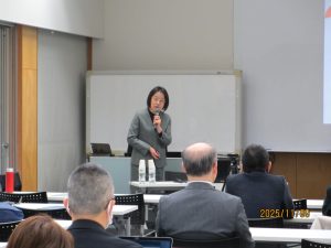 つぎに、東北公益文科大学大学院公益学研究科長の 武田 真理子 氏より、タイトル「山形で学ぶ意味について考える~地域共創・社会共創の視点から~」について基調講演をいただきました。