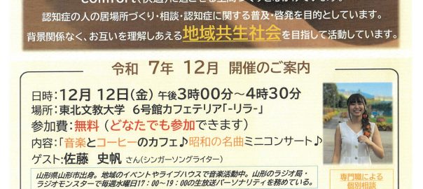 東北文教大学 認知症カフェ「café comfort」12月開催のご案内- 2025.10.31