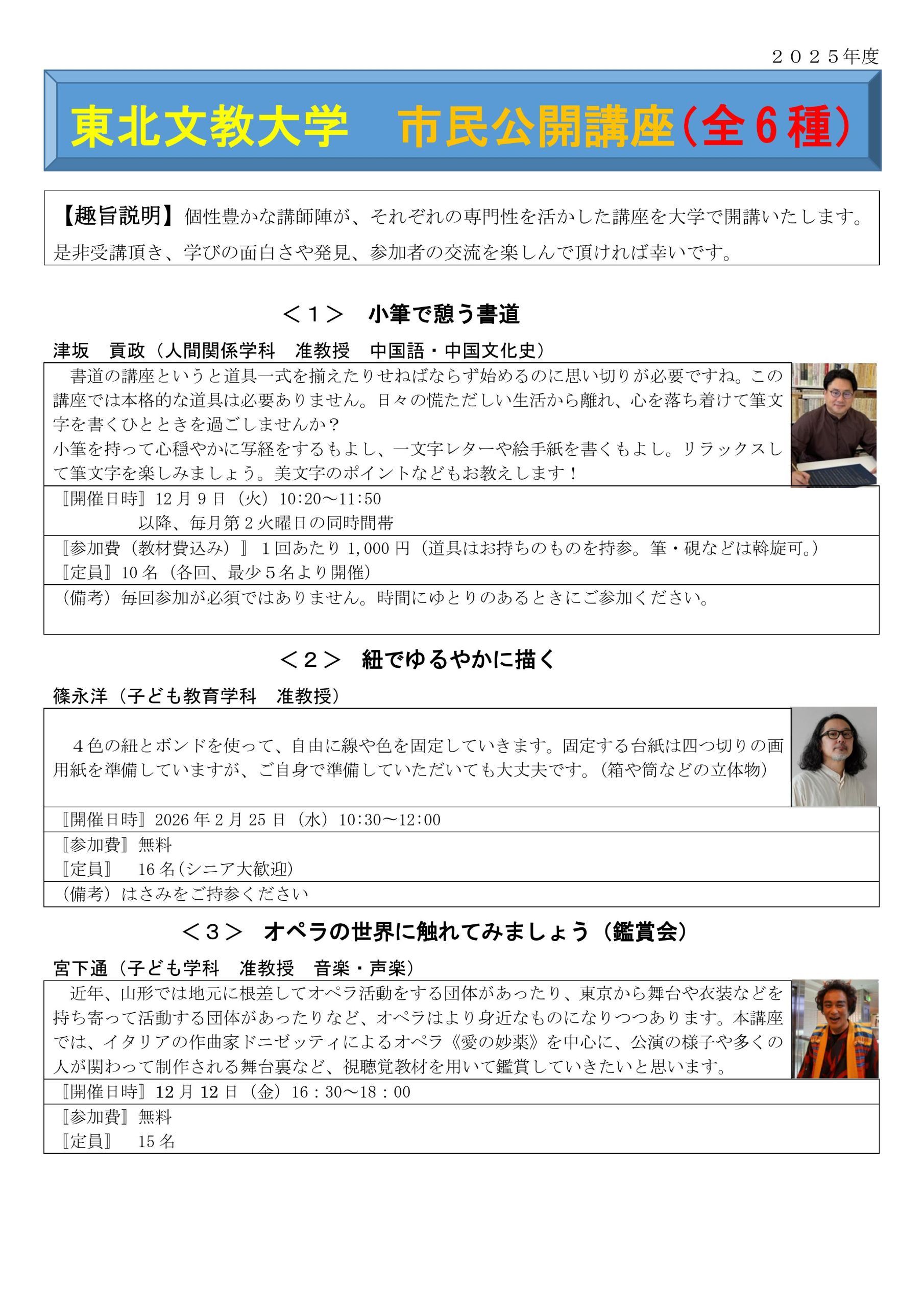 東北文教大学では「東北文教大学市民公開講座」と題しまして今年度6講座を開講いたします。