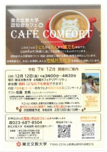| イベント名 | 東北文教大学 認知症カフェ「café comfort」12月開催のご案内 |